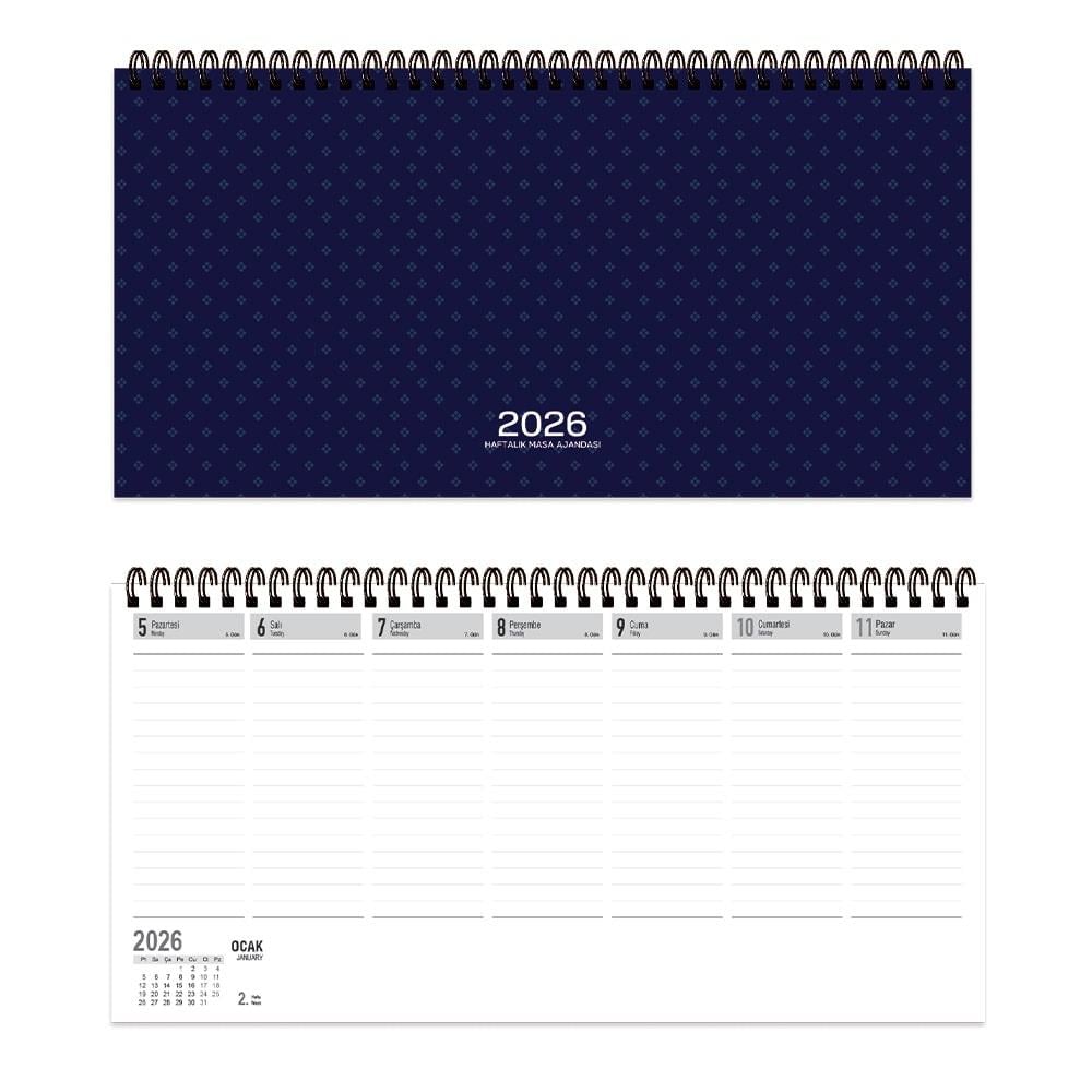 KESKİN 600143-99 2026 AJ-66 16X33.5 SPR HAFTALIK MASA AJANDASI LACİVERT