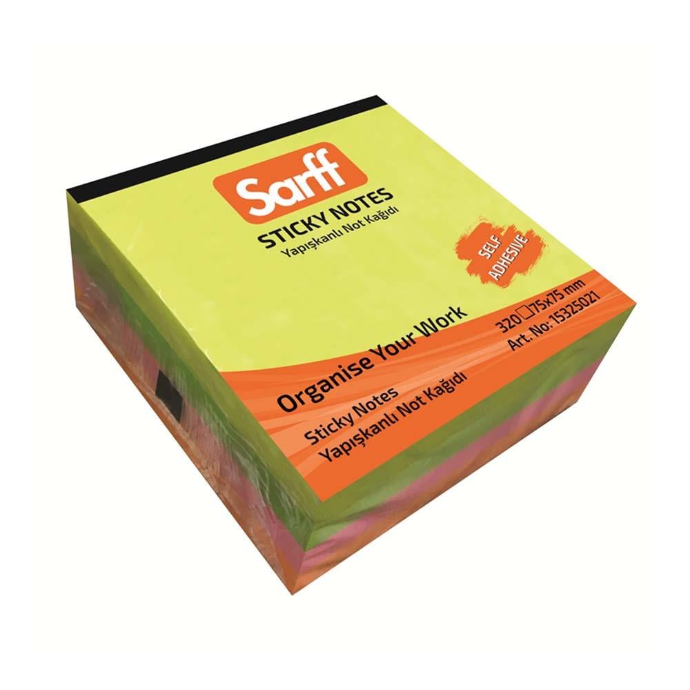 SARFF 15325021 75X75MM KÜP NOT KAĞIDI FOSFORLU RENK 320YP